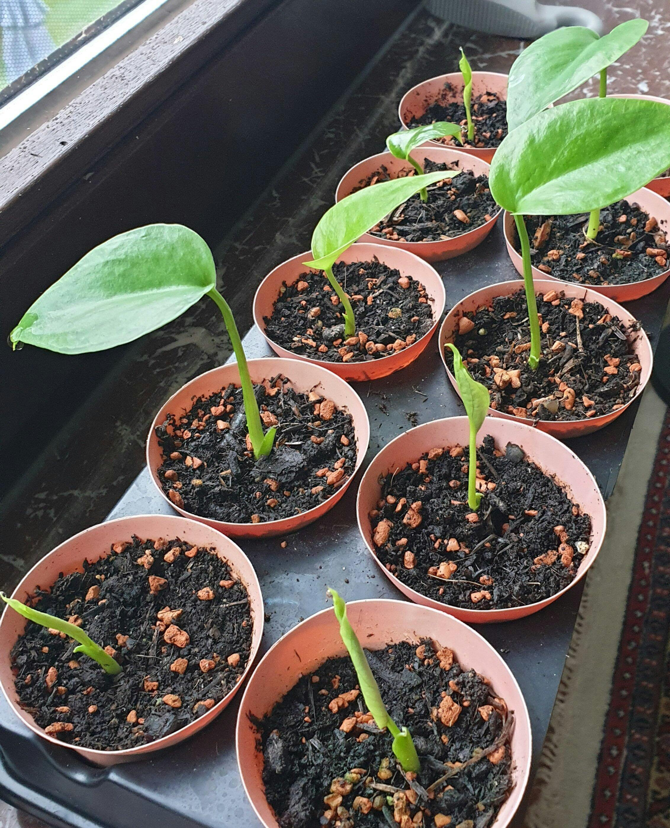 Die Keimquote der Samen variiert unter verschiedenen Bedingungen. Einen starken Einfluss haben z.B. das Substrat und die Temperatur während der Anzucht. Unter realen Bedingungen (wie bei dir zuhause) und mit unserem Monstera Substrat hat jeder Samen eine ungefähre Keimquote von 65%.